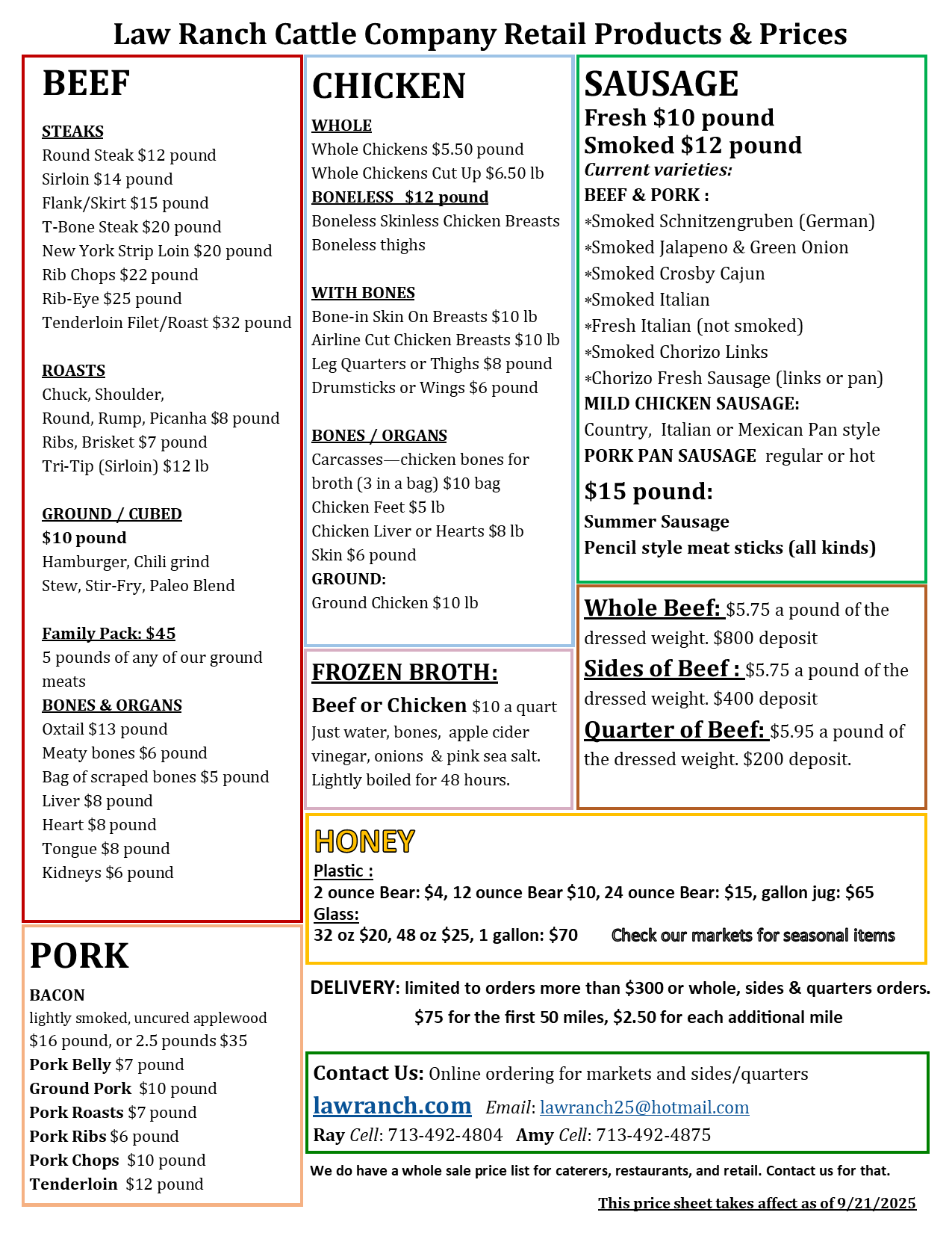 This price list is a jpeg image. You can right click it and save it to your phone or computer and print if needed. We do periodically make adjustments to our prices. We reserve the right to change our prices at any time.